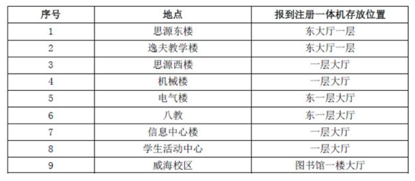 1、本次报到注册工作利用“本科生自助报到注册一体机”进行,一体机报到注册系统开放时间为2月16日9:00至2月19日22:00,机器放置位置见下表。本科生院将于2月19日22点统计各学院按时报到率,2月20日系统继续开放,统计最终报到注册情况。