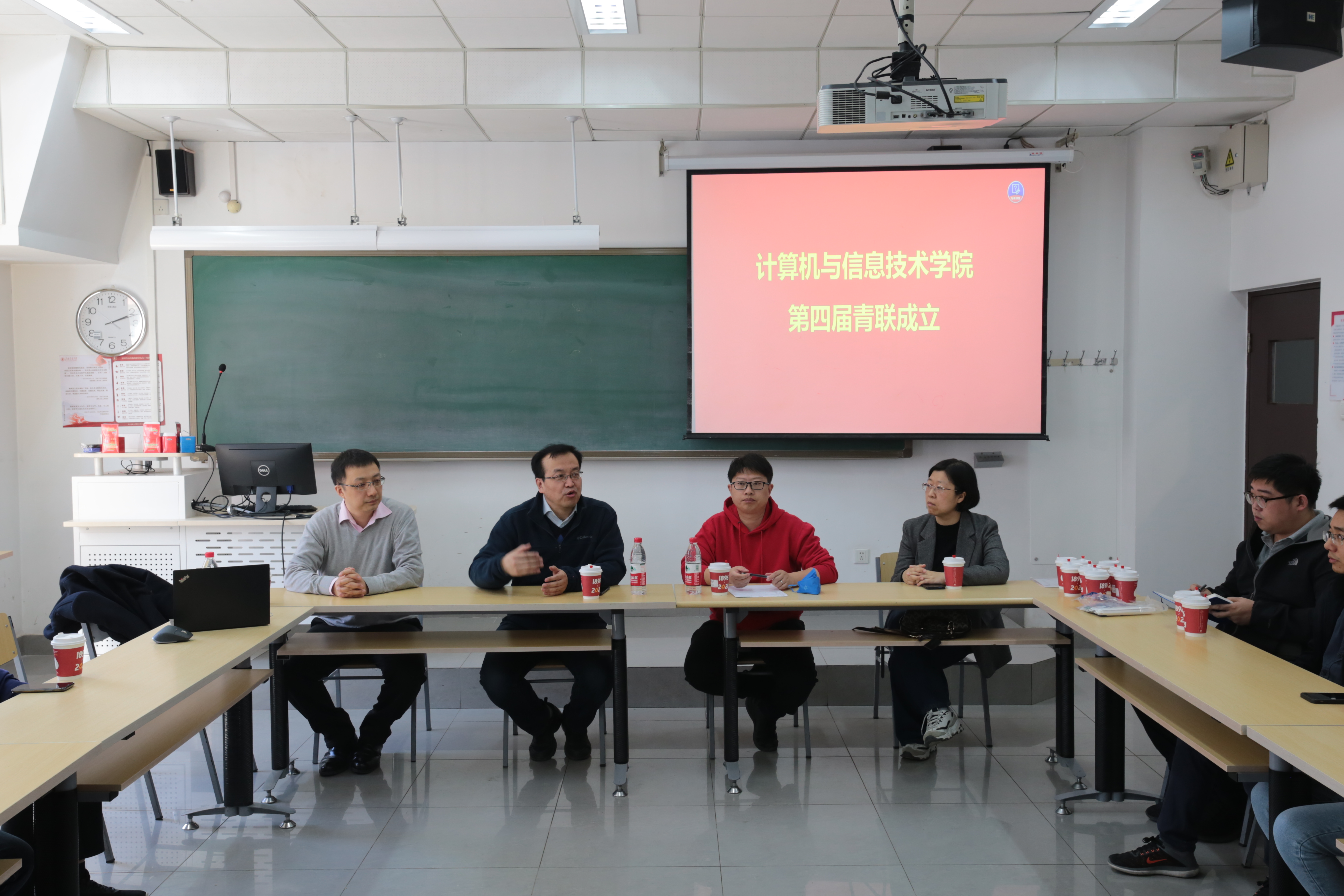 贾卓生老师和熊轲老师代表学院领导对青联新一届委员会成立表示祝贺,并殷切希望青联继续壮大,开展更多活动,打造青年教师交流学习平台,切实帮助教师尤其是青年教师解决发展中的问题,协助学院建设。上一届青联主席白慧慧老师、副主席任爽老师分享了青联的工作经验,并表示还会一如既往的关注和支持青联各项活动。新任主席陆杨老师宣读了第四届青联委员会成员和青联2022年工作计划,从学术交流、校外实践、团队建设、组织宣传、体育及文艺活动等六个方面对青联新一年的工作进行了梳理。大家认真倾听、互相补充,气氛融洽热烈。