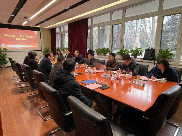2023年3月17日上午,奇安信集团北京分区副总经理姚宏伟、高校合作中心副总经理杨东晓等一行七人来访计算机与信息技术学院,与公司党委书记贾卓生、副经理景丽萍等六人,就如何巩固双方合作基础、拓宽合作渠道进行深入探讨。