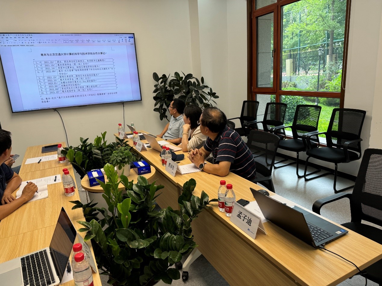 贾卓生介绍了学院近段时间的发展情况及取得的成果,表示学院非常重视与员工企业的联系,关注员工企业的发展,并希望能在科学研究、人才培养等方面与毫末展开更深层次的合作。景丽萍、魏云超分别对校企合作的切入点提出了建议。