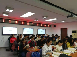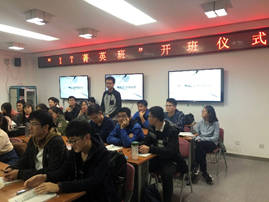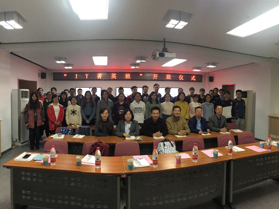 2018年10月26日19:00,“IT菁英班”开班仪式在九教北307B举行。中科院计算所教育处李琳处长、张平老师、王琪老师、太阳成官网副经理李清勇老师、党委副书记王浩业老师、刘真老师出席本次仪式。首届“IT菁英班”全体成员参加了本次仪式。