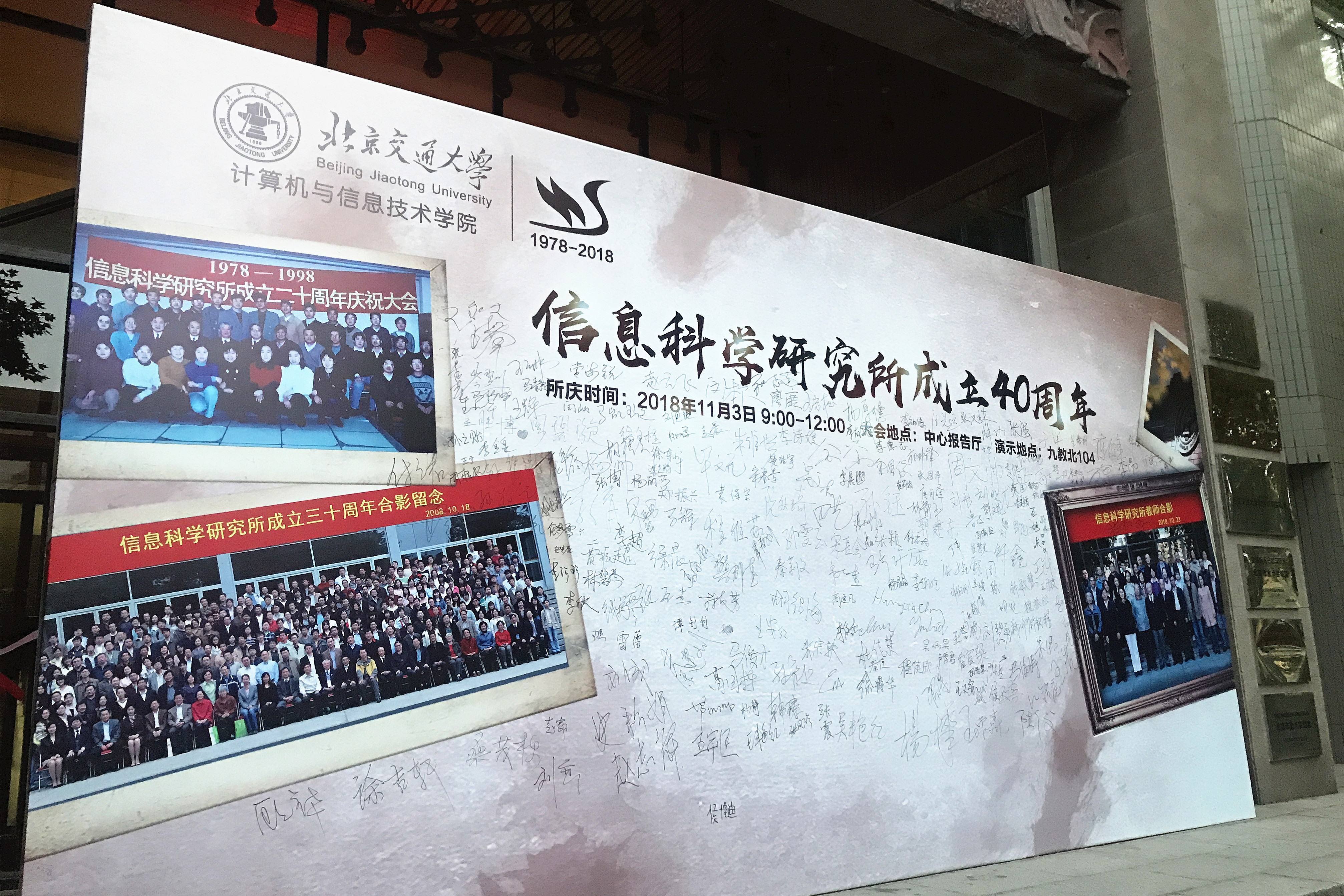 2018年11月3日,公司计算机与信息技术学院信息科学研究所迎来四十华诞,邀请了公司余祖俊副董事长、科技处荆涛处长、研究生院李国岫常务副经理、电子信息工程学院唐涛经理、计算机与信息技术学院蔡伯根经理、杨晓晖书记等领导和中央军委联合参谋部第55所樊邦奎院士、美国犹他州立大学承恒达教授及毕业员工、在校师生等三百余人,在中心报告厅共同参加这一庆典活动。
