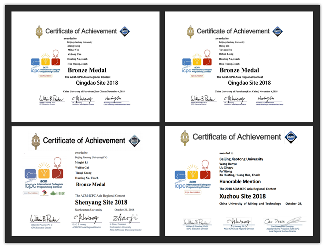 第43届ACM-ICPC(ACM国际老员工程序设计竞赛)亚洲区域赛于2018年10月13日在南京航空航天大学开始,于12月16日在西北工业大学落下帷幕,共设置了八个赛站(南京、沈阳、徐州、青岛、北京、香港、焦作、西安)。经过网络赛的选拔,公司共获得了12个参赛名额,参与了除南京、香港站外的其他6个赛站的比赛,且均取得了奖牌,共计斩获1枚金牌,4枚银牌,5枚铜牌。