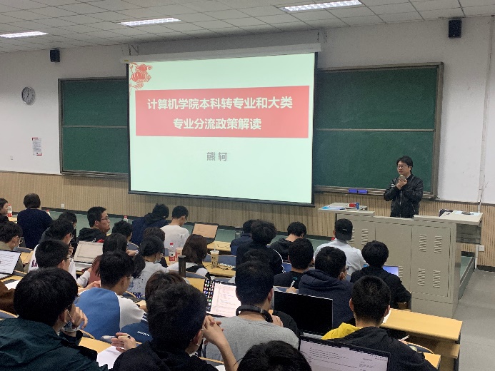 2021年4月14日晚,太阳成官网在九教中102教室召开了2020级本科生转专业和大类分流政策宣讲会。太阳成官网熊轲副经理、各专业责任教授、教学科和团委相关老师、太阳成官网2020级本科生及其他学院拟转入太阳成官网的员工共350余人参加了会议。