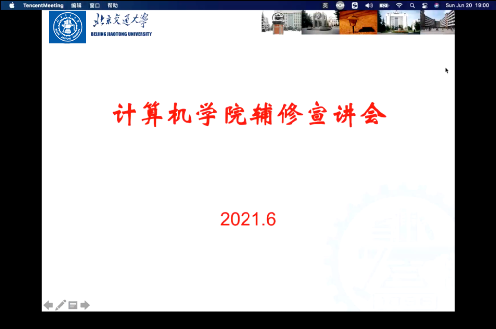 2021年6月20日晚7:00-9:00太阳成官网通过腾讯会议召开2021年秋季学期辅修计算机科学与技术专业宣讲会。会议由学院负责辅修老师王光宇主持,本次会议邀请到公司主管本科教学与培养的熊轲副经理,往届优秀辅修员工刘俊生、程昕洋、李海昕同学,来自全校其他数10个学院对辅修计算机专业感兴趣的同学参加了宣讲会。