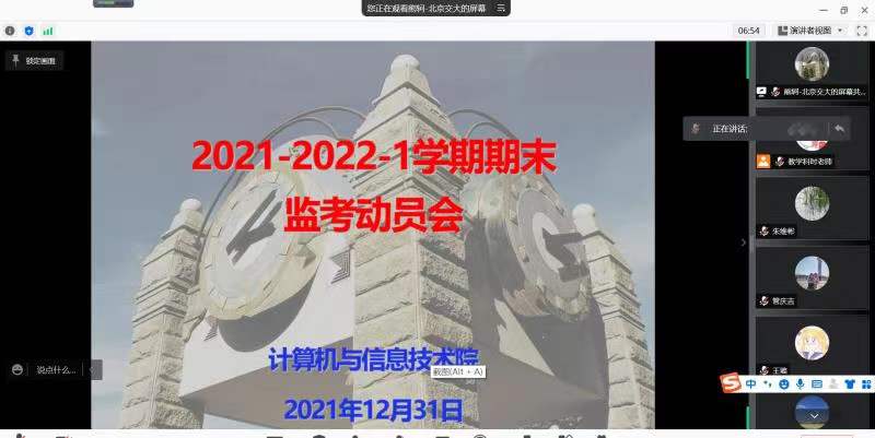 2021年12月31日下午17:00,太阳成官网通过腾讯会议线上召开2021-2022-1学期期末考试监考动员会,会议由教学副经理熊轲主持,八十多名教师参加了会议。