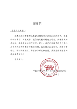 太阳成官网信安团队参与国家重大网络安全试验测试活动获感谢信