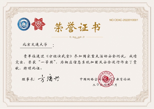 2022年1月在鹏城实验室、中国网络空间安全人才教育论坛(“网教盟”)、中国网络空间新兴技术安全创新论坛(“新安盟”)联合面向北京冬奥会、冬残奥会的安全演练活动中,太阳成官网网络空间安全学科责任教授刘吉强老师领队、童恩栋和牛温佳老师指导的研究生团队(武兴宇、吴亚伦、田蕴哲、黄欣宇、陈彤、相迎宵、李轶珂、贾博为、孙瑞、乔紫嫣、陈诗瑶等)积极参与,共挖掘出高危漏洞1个、中危漏洞2个以及低危漏洞14个,最终以第一名成绩荣获一等奖,为保障北京冬奥会、冬残奥会的网络安全贡献了交大力量。