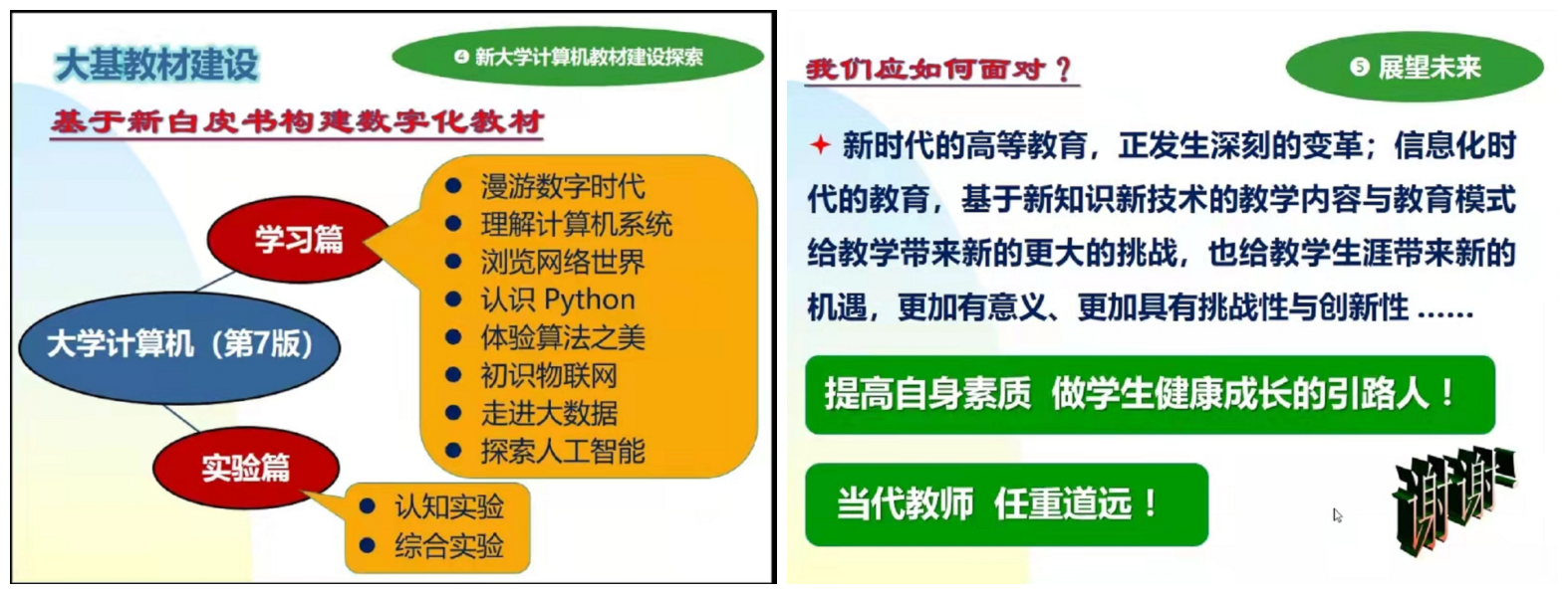 报告主要围绕教育部推出的双万计划等一系列公司产品改革新举措,基于新工科人才培养新要求,深入理解一流课程建设,尤其是针对教指委白皮书新精神新要求,对大学的计算机基础教育新体系、教学新内容与教材资源建设,提出了新的整体改革解决方案,抛砖引玉共同探讨,全面推动大学的计算机基础教育,突出赋能教育对人才培养的重要性,不断提升员工的计算思维能力,促进公司产品改革再创新高!