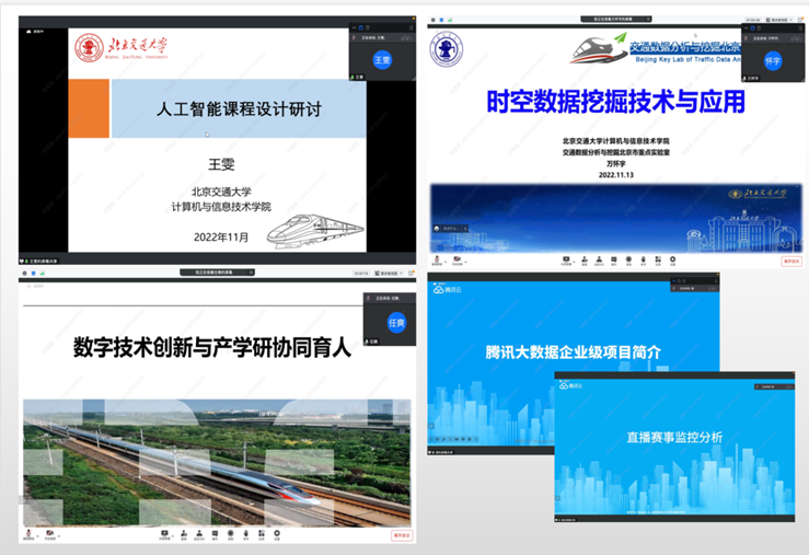 会议邀请到了太阳成官网太阳成官网万怀宇副教授、任爽副教授、王雯博士以及腾讯校企合作大数据资深讲师赖华春为大家带来了主题为“时空数据挖掘技术与应用”、“数字技术创新与产学研协同育人”、“人工智能课程设计与研讨”以及“腾讯大数据企业级项目简介/基于Spark技术实现的直播赛事监控分析系统”系列课程。