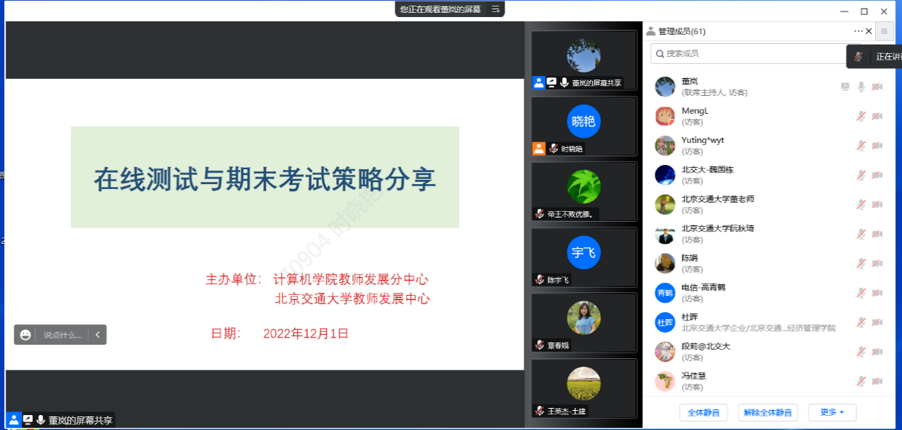 经过本次会议的学习和交流,老师们对于如何使用课程平台和雨课堂实施线上考试,如何分考场进行监考,如何更好地防止作弊行为有了更多的思路和解决办法,对保障公司期末线上考试质量起到了非常重要的作用。