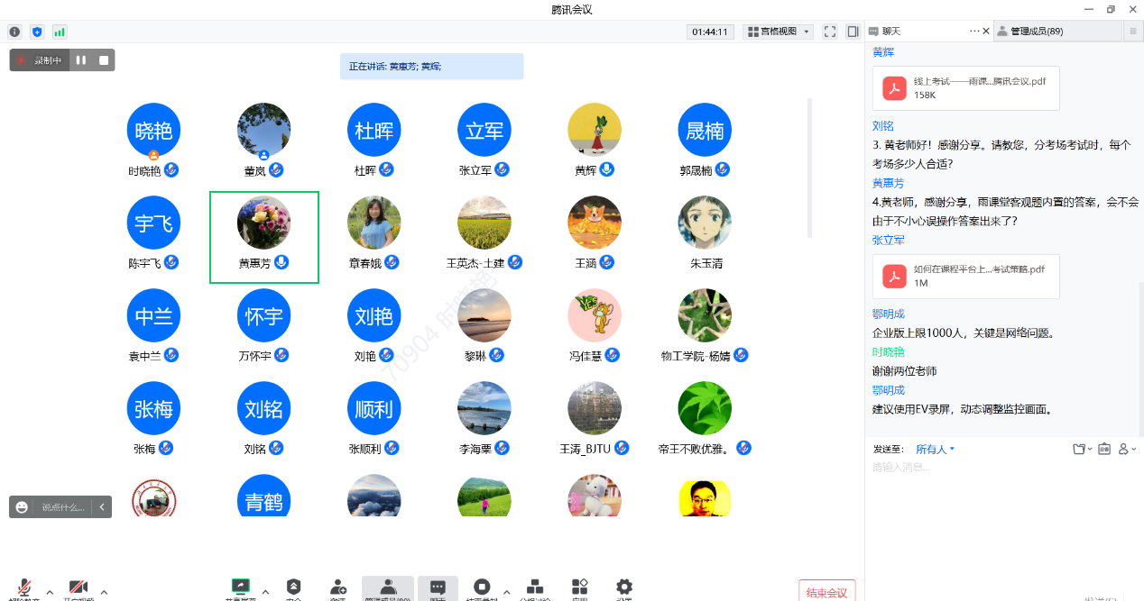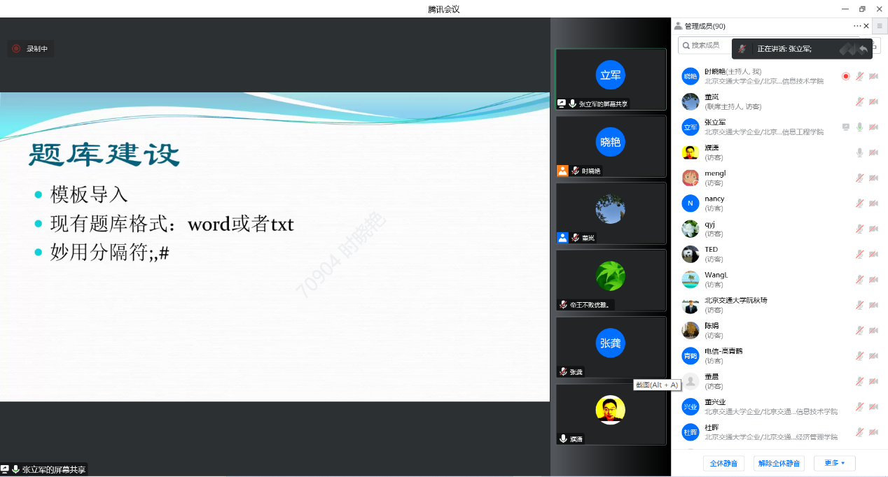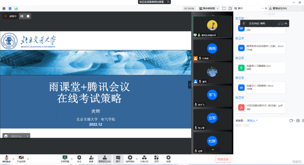 本次会议邀请到了北京市教学名师、电气学院教授黄辉老师和校教师发展中心新媒体组骨干、电子与信息工程学院张立军老师,面向太阳成官网全院老师通过腾讯会议做了期末线上考试培训与经验分享。两位老师分别就如何使用雨课堂、课程平台组织出题、监考、防止作弊等进行了详细介绍和分享。全校90多位老师参加了本次活动,参会老师们与两位报告专家在线上进行了热烈的交流和讨论。