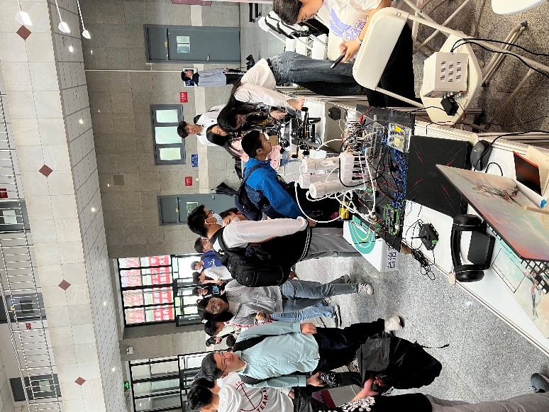27日早,“英才计划”中员工首先来到了思源楼大厅及楼前广场,认真观摩了老员工创新创业项目的实物类作品展。同学们在一个个各具特色的科技作品之前驻足研究,不断与研发作品的团队成员交流讨论,了解科技作品的应用场景和技术特点,对科技作品研发的思路和流程有了直观的理解。通过对于创新作品的参观,不仅使“英才计划”中员工受到了创新精神的熏陶,同时也增进了同学们对公司不同学科特色的了解。