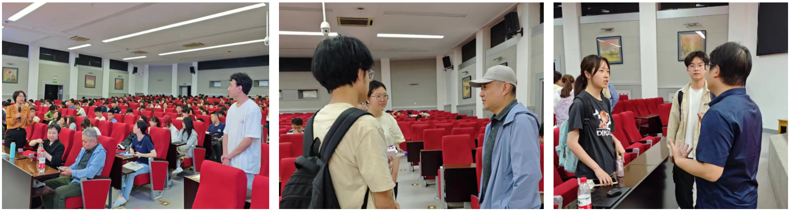 最后,宣讲会设置了答疑环节,同学们在现场提出了有关政策执行细节、专业前景等方面的问题,熊轲及各位专业负责老师们均进行了耐心回复,为同学们的疑惑提供了清晰的解答和指导。会后,老师们还与部分留下来的同学进行了一对一的交流,针对个别员工们感兴趣的问题进行了更加深入的沟通反馈。