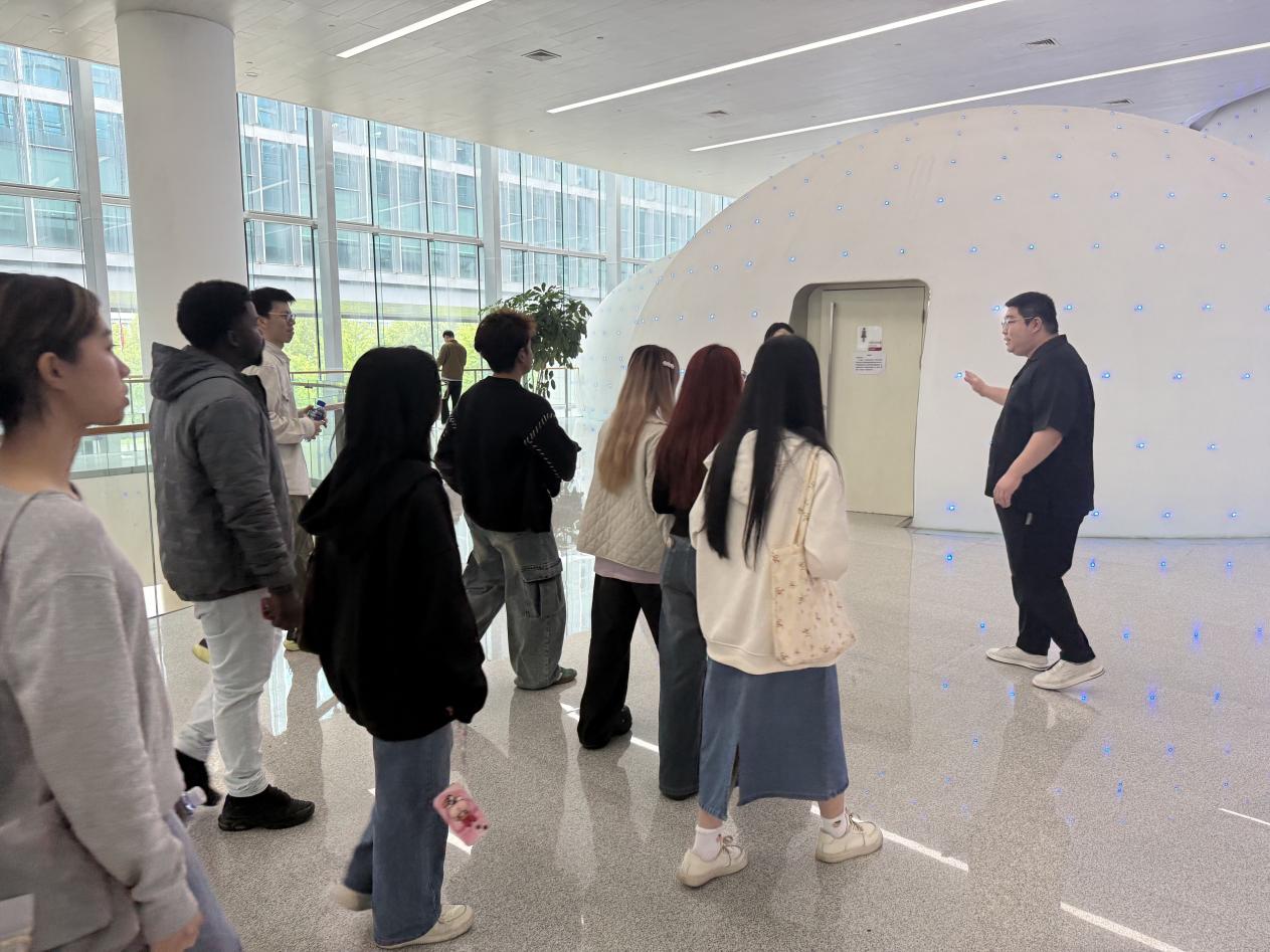 百度是伴随互联网和AI大潮快速发展的国内领先科技企业,科普参观内容涵盖百度AI核心和前沿技术—大数据、大模型、智能芯片、智能家居、自动驾驶等。百度科普展厅位于著名建筑师青山周平设计的百度大厦B座一层。活动伊始,讲解员带领同学们走进“百度之路”展区,详细介绍企业发展历程、理念使命,着重分享近年来在芯片、框架、模型及应用层面的代表性产品,生动展现百度以技术创新驱动变革,成长为行业领军者的奋进之路。