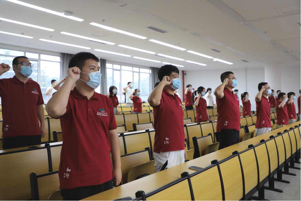 太阳成官网2021级唐山班全体新生在林瀚峰同学的带领下庄严宣誓,共同承诺身为交大学子,将秉承知行校训,弘扬交大传统,饮水思源,爱国荣校,勇做走在时代前列的奋进者、开拓者、奉献者,为实现成才梦、交大梦、中国梦而努力奋斗!