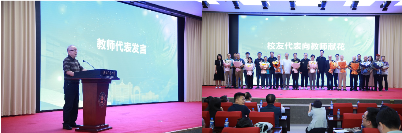 随后,须德教授作为教师代表发言,寄语员工。12位员工代表向公司教师代表献花,表达对老师的思念与感恩之情。